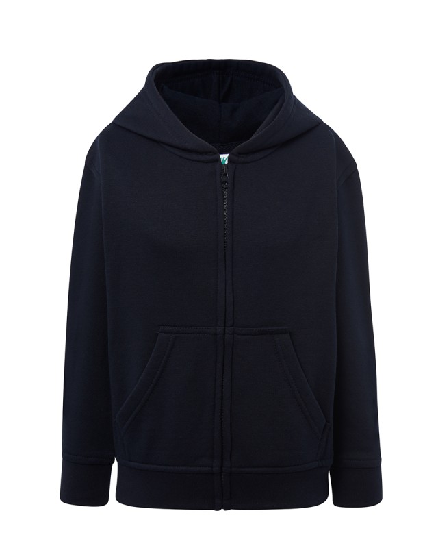 - Descrizione: Felpa bambino con cappuccio e zip intera; Cordino cappuccio in tinta; Costina 1x1 con lycra su polsini e girovita; Tasche a marsupio Composizione: 65% poliestere + 35% cotone. Peso: 290 gr/m2. Vestibilità: regolare. Busto: cuciture laterali. Etichetta: rimovibile.