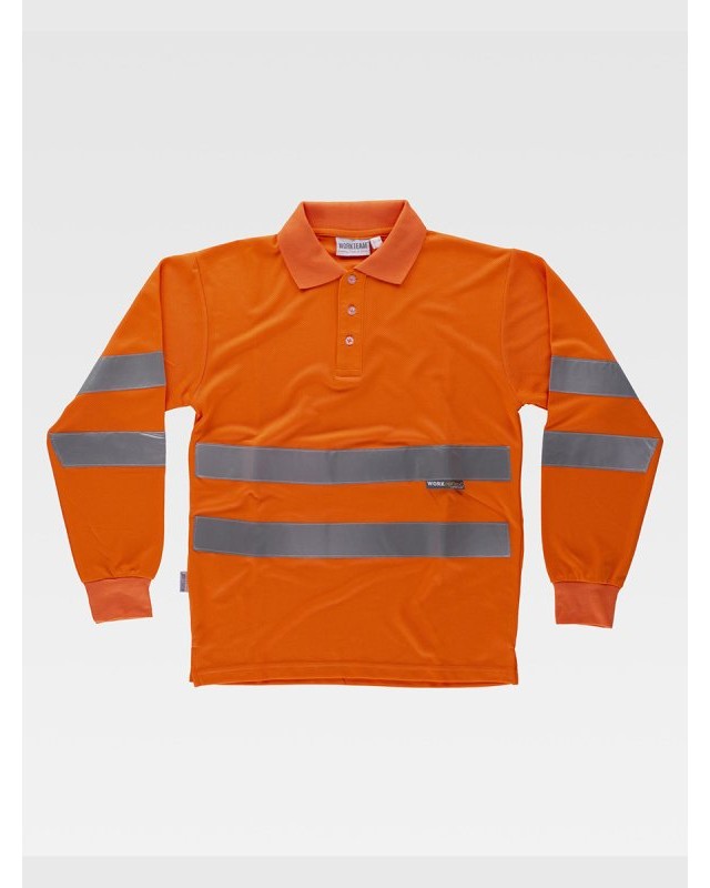 - Descrizione: ALTA VISIBILITà EN ISO 20471:2013. Classe 2; Polo certificata alta visibilità manica lunga; Con bottoni sul collo e due bande riflettenti su petto, spalla e maniche Composizione: 100% poliestere. Peso: 160 gr/m2. Busto: cuciture laterali.