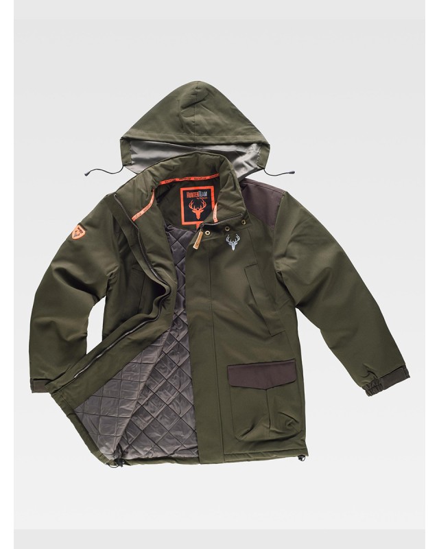 - Descrizione: Parka collo alto e cappuccio, impermeabile e imbottito con cuciture termosaldate; Chiusura con cerniera nascosta e patta con bottoni metallici; Elastico nei polsini e regolabile con velcro; Cordino elastico regolabile sull'orlo; Due tasche sul petto con cerniera e due tasche laterali con bottoni automatici; Una tasca con velcro sul lato interno Composizione: 100% poliestere. Peso: 430 gr/m2. Busto: cuciture laterali.