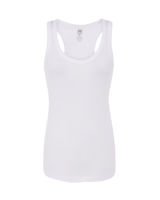 - Descrizione: Canotta donna con spalline incrociate sul retro; Costina 1x1 Composizione: 100% cotone. Peso: 200 gr/m2. Vestibilità: slim fit. Busto: cuciture laterali. Etichetta: rimovibile.