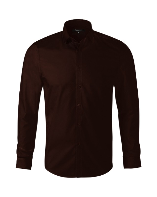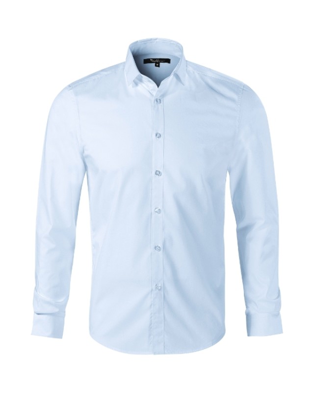 - Descrizione: Camicia da uomo taglio sciancrato con cuciture laterali parte posteriore con carre’ in tessuto doppio e con pinces doppio collo punte del colletto rinforzate abbottonatura sul davanti maniche lunghe con polsini smussati e 2 bottoni bottoni in madreperla nello stesso colore del tessuto (1 di ricambio) bordo inferiore sagomato. Intreccio a tela, 60 % cotone, 40 % poliestere, slim fit. Grammatura: 105 g/m² . Lavabile a: 40 °C. Etichetta: tessuto