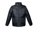 - Descrizione: Giubbino in poliestere lucido - Fodera in poliestere - Imbottitura in poliestere - Maniche staccabili - Cerniere nastrate - Una tasca sul petto con zip - Due tasche con zip - Due doppie tasche (una aperta e una con velcro) - Una tasca interna portafoglio con velcro - Un gancio portachiave o portabadge estraibile - Tessuto elasticizzato ai polsi