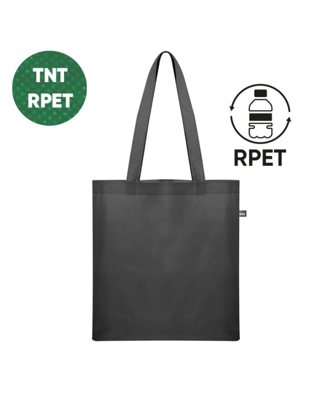 - Descrizione: borsa shopping in tnt rpet manici lunghi tecnica di stampa consigliata: serigrafica - Dimensioni: cm 38x42 - Materiale: tnt rpet