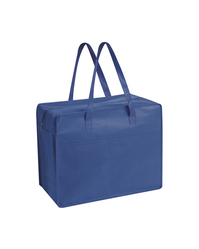 - Descrizione: borsa shopping con soffietto chiusura con zip tasca frontale con velcro manici corti rifiniture cucite tecnica di stampa consigliata: serigrafica - Dimensioni: cm 40x36x20 ca - Materiale: tnt