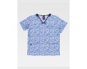 - Descrizione: Casacca unisex elasticizzata manica corta; Tessuto stampato fantasia; Collo a V con sbieco elastico; Carrè sulle spalle; Una tasca sul petto e due laterali; Spacchi laterali Composizione: 93% poliestere + 7% elastane. Peso: 170 gr/m2. Busto: cuciture laterali.