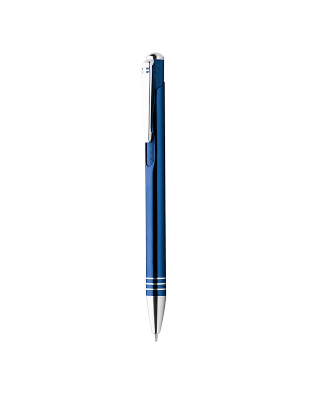 • Descrizione: penna a sfera meccanismo a scatto minuterie in metallo cromato refil jumbo con sfera al tungsteno inchiostro nero tecnica di stampa consigliata: serigrafica - tampografica - incisione - UV - Dimensioni: Ø cm 1 x h14 ca - Materiale: Alluminio