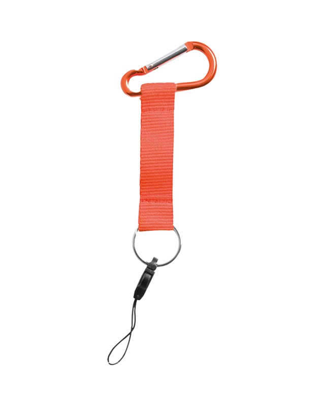 • Descrizione: portachiavi moschettone di metallo in tinta gancio portacellulare anello in metallo cromato tecnica di stampa consigliata: serigrafica - sublimatica (BI-IT) - Dimensioni: cm 9x2 ca - Materiale: poliestere e metallo