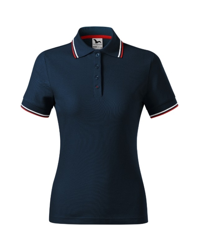 • Descrizione: Polo da donna taglio sciancrato con cuciture laterali collo a costine 1:1 2 strisce a contrasto sul bordomanica e sul colletto abbottonatura stretta con 4 bottoni nello stesso colore del tessuto bottone inferiore cucito con filo in colore a contrasto parte interna della scollatura con nastro in colore di contrasto cuciture delle spalle rinforzate spacchi laterali con fascetta in colore di contrasto. Piqué, 65 % cotone, 35 % poliestere (la composizione del colore 12 puo’ variare - 85 % cotone, 15 % viscosa). Lavabile a: 40 °C. Grammatura: 180 g/m² . Etichetta: tessuto