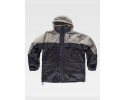 - Descrizione: Parka impermeabile e bicolore con fodera in pile interna staccabile; Chiusura con cerniera nascosta in nylon e bottoni automatici; Collo alto e Cappuccio; Polsi elastici regolabili con velcro, vita e orli inferiori regolabili con cordoncino; Due tasche sul petto e due laterali con cerniere a risvolto Composizione: 100% poliestere. Peso: 480 gr/m2. Busto: cuciture laterali.