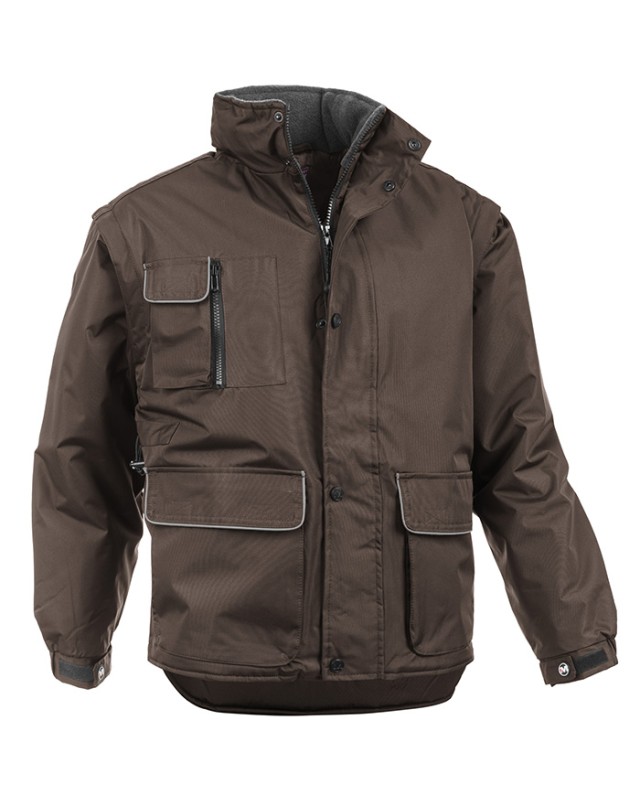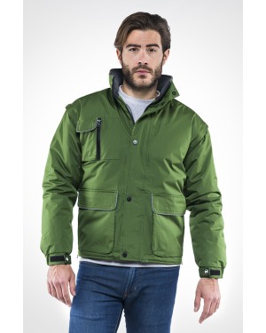 - Descrizione: 100% POLIESTERE SPALMATO PVC - imbottitura: 180 gr/m2 - MASTERPOLY 1 PZ. BOX 10 PZ. - S - M - L - XL - XXL - 3XL - DPI 1a categoria - Giubbino rip-stop - Piping in silver fluo - Spacchi laterali con cerniera - Cappuccio richiudibile nel collo - 2 tasche laterali - 2 tasche con chiusura con pattina e velcro - Tasca portacellulare sul petto lato destro - + tasca con cerniera - Tasca con cerniera lato sinistro sotto la pattina centrale - Elastico ai polsi + Stringipolsi in velcro - Zip interna per agevolare stampe e ricami - Coulisse in vita - *** MANICHE STACCABILI *** - conforme UNI EN 14058