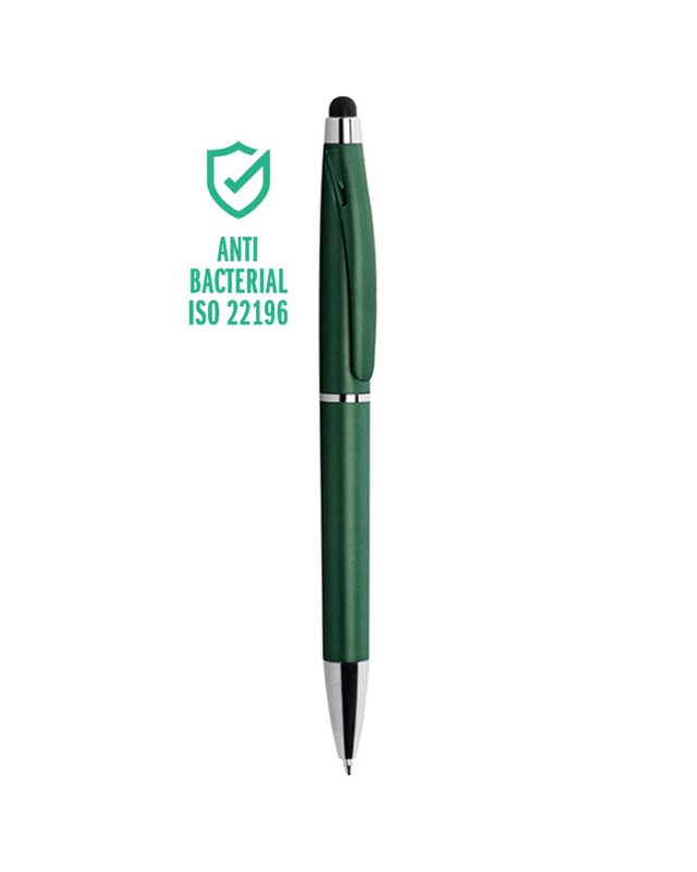 - Descrizione: penna a sfera con gommino per touch screen meccanismo a rotazione minuterie in metallo cromato refill con sfera al tungsteno inchiostro nero tecnica di stampa consigliata: serigrafica - tampografica - UV - Dimensioni: Ø cm 1,25xh14,5 ca - Materiale: plastica